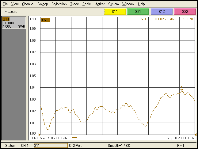 电压驻波比 VSWR 1..06 频率 Frequency Range (GHz) 5.38-8.17